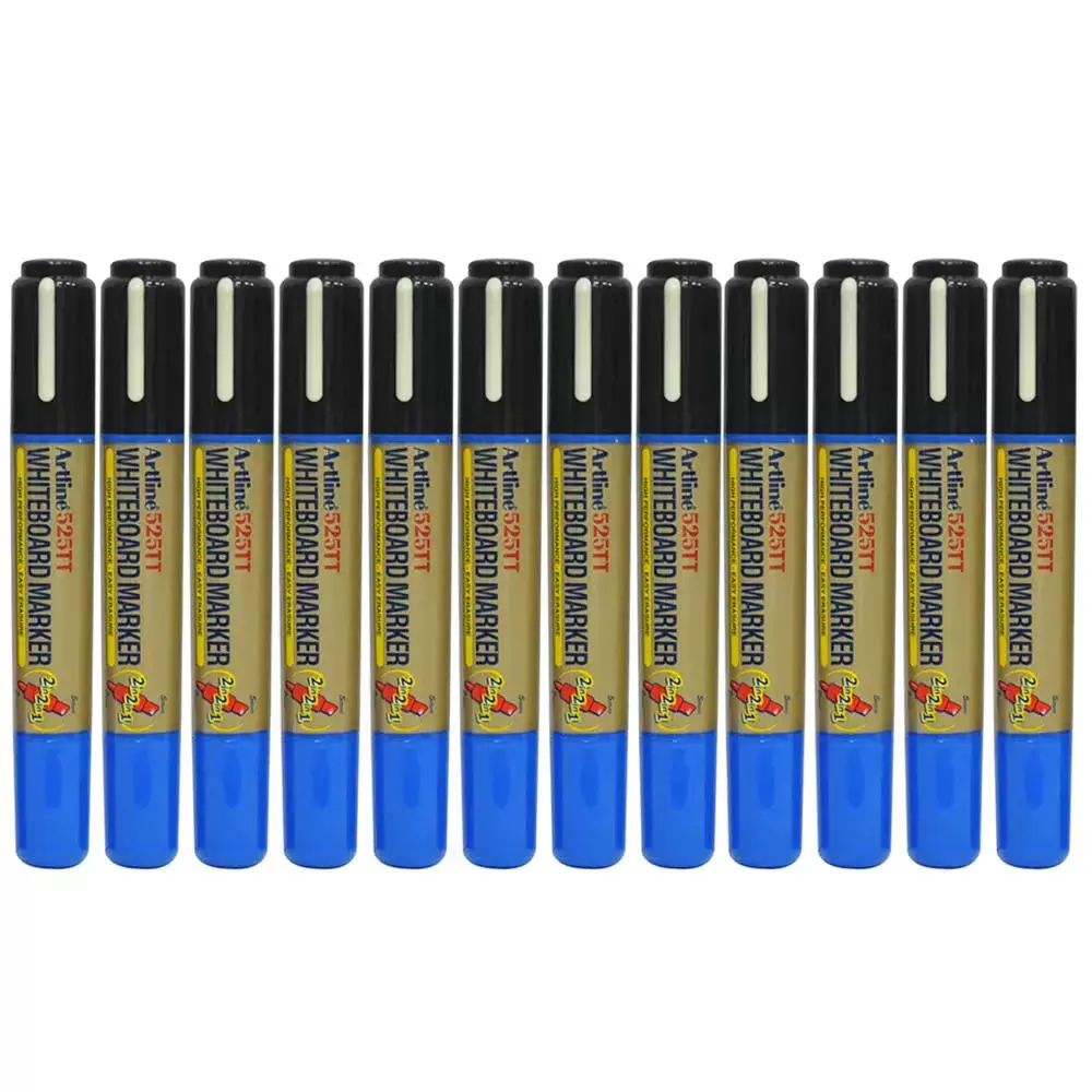 Artline 525T 2in1 Whiteboard Markers 2.0mm-5.0mm, Pack of 12 Pcs, Black/Blue Colors, Polyester Fibre Tip – ARMK525TBKBL