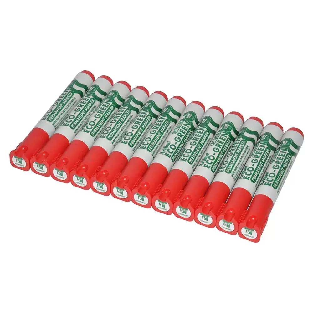 Artline Eco-Green Permanent Markers 2.0mm-5.0mm, Pack of 12 Pcs, Red Color, Polyester Fibre Tip, Chisel Style – ARMKEK-199RE