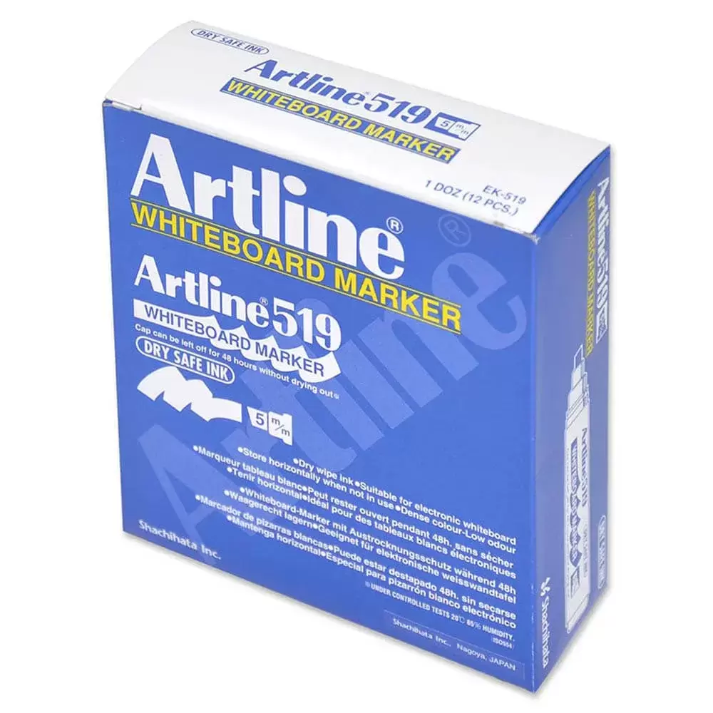 Artline White Board Marker Broad Pack of 12, Dry Safe, Red, 519 – ARMK519RE
