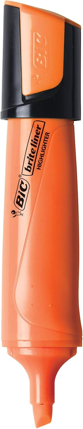 The BIC Brite Liner Flat Highlighter helps bring a bright splash of color to your notes, documents, and more. Ultra-bright ink colors help important notes stand out. The versatile chisel tip creates broad lines and fine lines – perfect for notes of all sizes, or for adding fun, colorful designs to your journals or drawings.