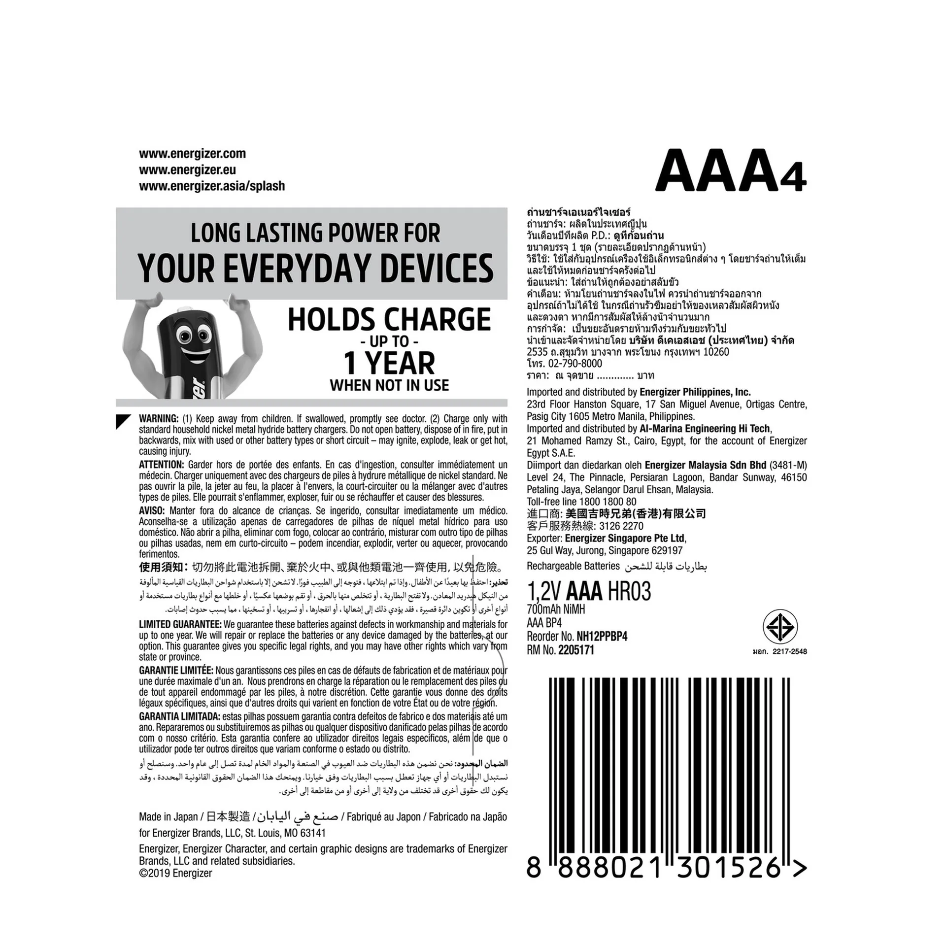 • Made using Recycled Materials – The world’s first rechargeable AAA battery made with 4% recycled batteries