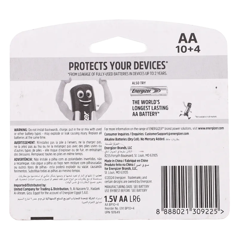 Energizer Max Alkaline AA Batteries Pack of 10+4