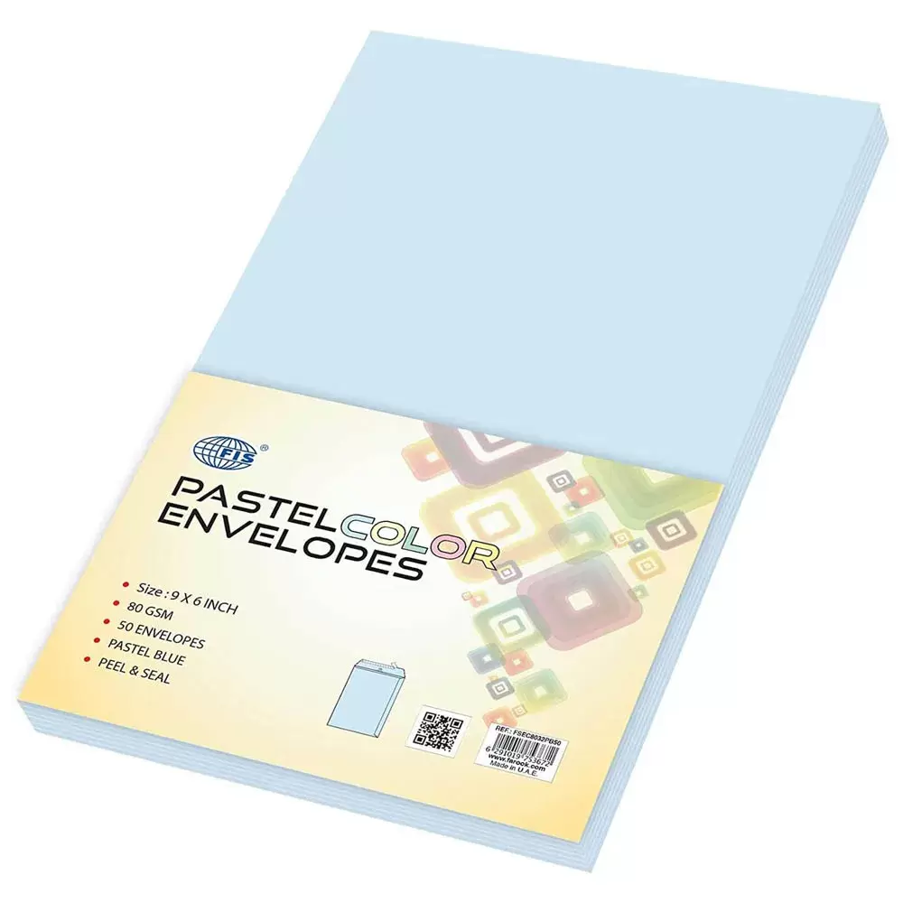 FIS Color Envelopes, Peel & Seal, Pastel Blue Colors, Pack of 50 Pcs. 9 x 6 inch, 80 GSM – FSEC8032PB50