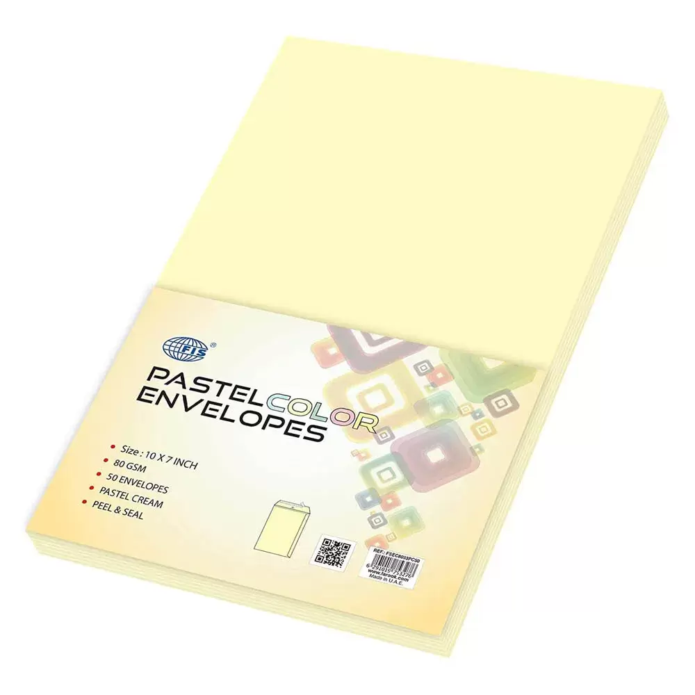 FIS Color Envelopes Peel & Seal, Pastel Colors, Pack of 50 Pcs. Cream Color, 10 x 7 Inch, 80 GSM – FSEC8033PC50