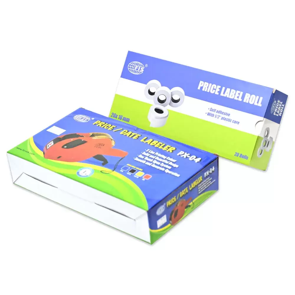 • Set contains : FSPX04BL Which prints 2 line (upto 10) Digits along with 1 Ink Roller and Pack of 20 Label rolls,
