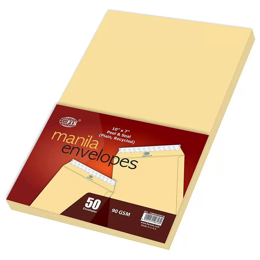 FIS Manila Envelopes Peel & Seal, Plain, Pack of 50 Pcs. C4 (324 x 229 mm), 90 GSM – FSME9027P50