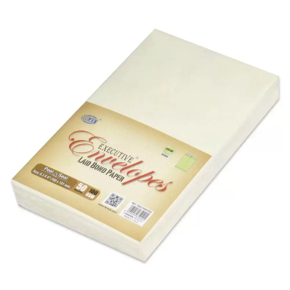 FIS Pack of 50 Executive Envelopes, 100 GSM, Peel & Seal, Size 6.3 X 4 inch, Color Green