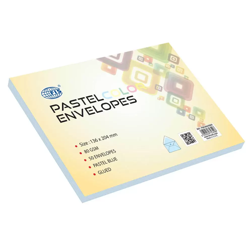 FIS Pack of 50 FIS Pastel Color Envelopes, 80 GSM, Size 136 X 204mm, Glued, Color Blue