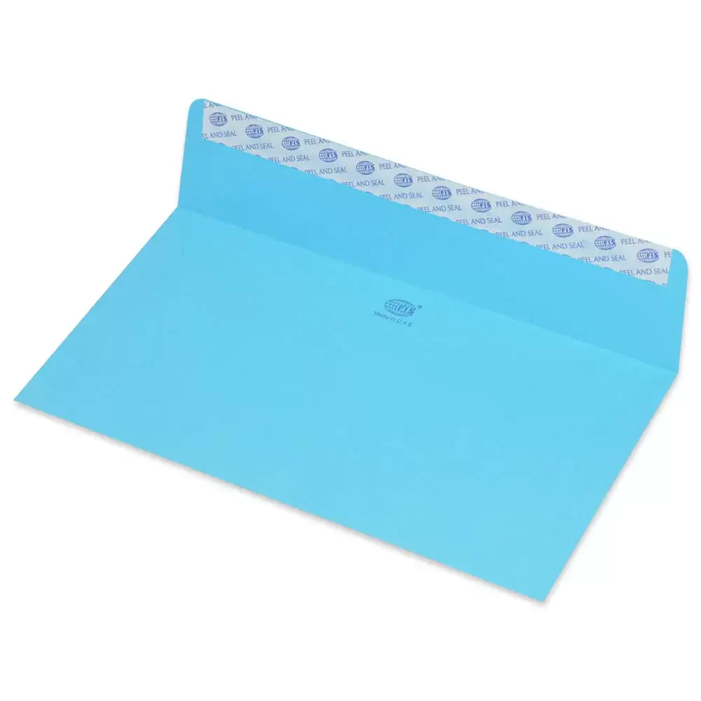 FIS Pack of 50 Neon Color Envelopes, 80 GSM, Peel & Seal, Size 110 X 220mm, Color Blue