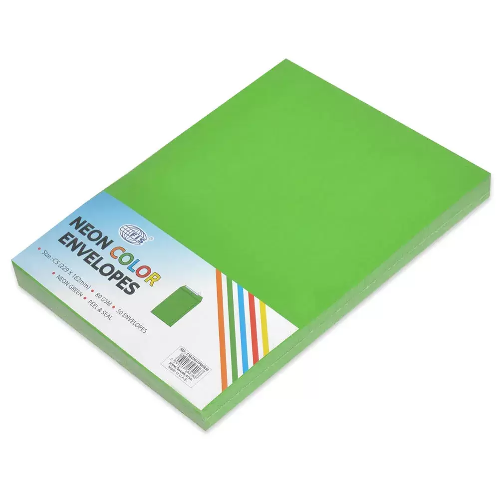 FIS Pack of 50 Neon Color Envelopes, 80 GSM, Peel & Seal, Size C5(229 X 162mm), Color Neon Green