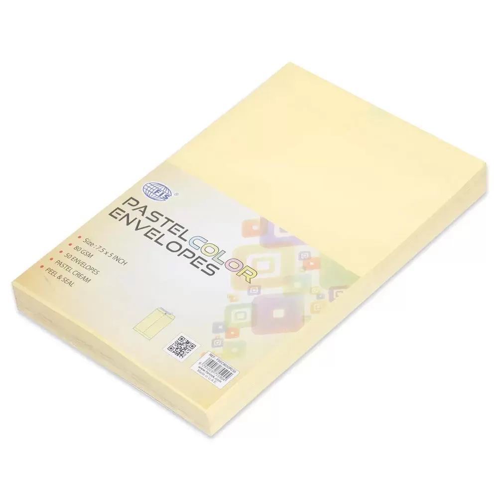 FIS Pack of 50 Pastel Color Envelopes 80 GSM, Peel&Seal, Size 7.5X5 Inch, Color Cream