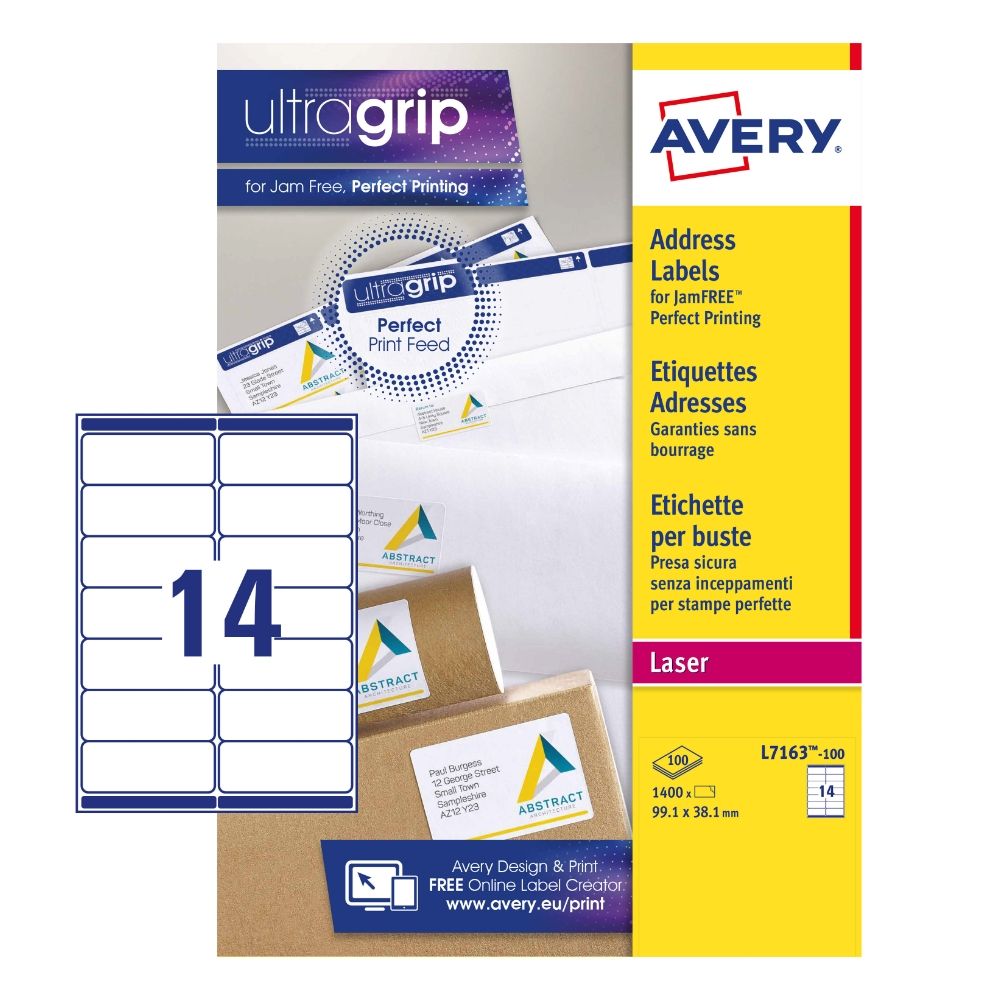 ADDRESS LABELS L7163-100 WITH ULTRAGRIP AND QUICKPEEL TECHNOLOGY, 99.1 X 38.1 MM, 14 LABELS PER SHEET, 100 SHEETS IN A PACK