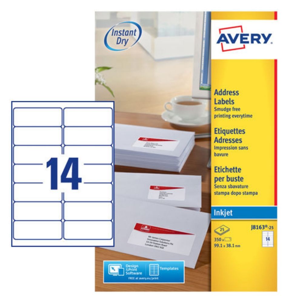 ADDRESS LABELS FOR INKJET PRINTERS J8163-25, 99.1 X 38.1MM LABELS, WHITE, 14 LABELS PER SHEET, 25 SHEETS IN A PACK
